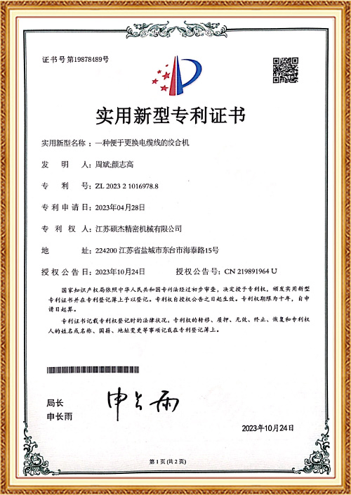 ইউটিলিটি মডেল পেটেন্ট সার্টিফিকেট